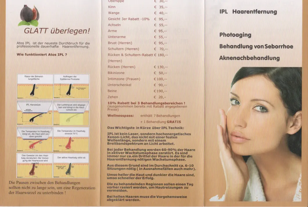 neben Haarentfernung mit Warmwachs bieten wir auch Haarentfernung mit Xenonlicht - IPL - an.